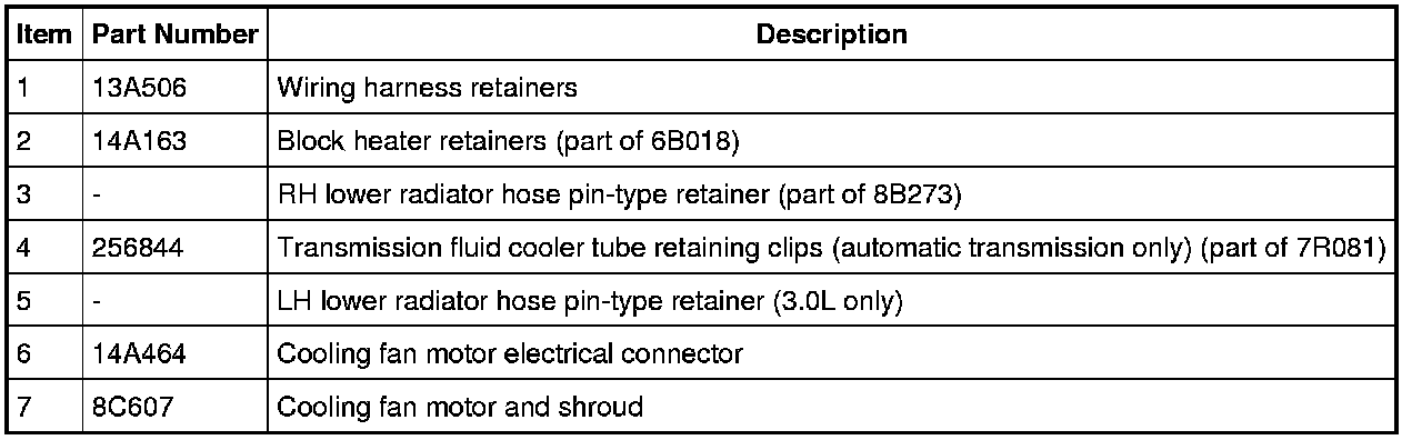 1. Detach all the wiring harness retainers from the cooling fan and shroud.