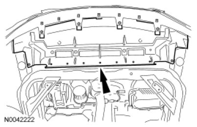 5. If equipped, detach the 2 transmission cooler tube retainers from the cooling fan motor and shroud.