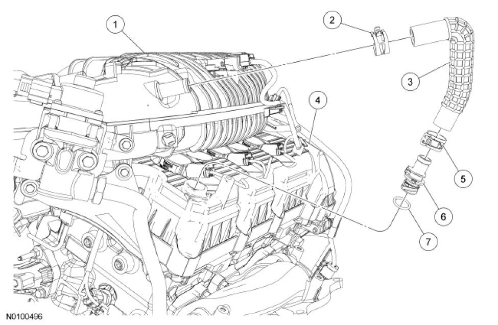 1. Release the clamp and disconnect the crankcase ventilation tube from the PCV valve.