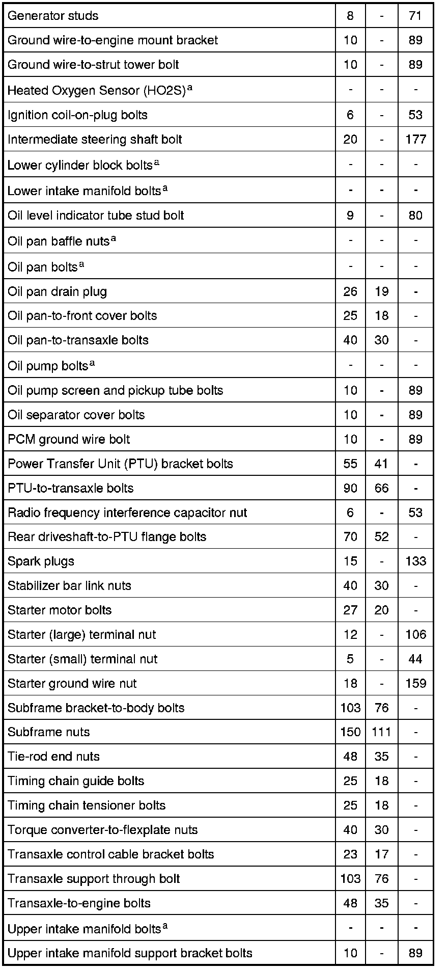 Torque Specifications