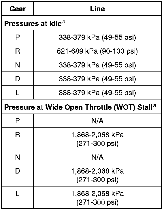 2. Start the engine and check the line pressures see the line pressure chart to determine if the line pressure is within specification.