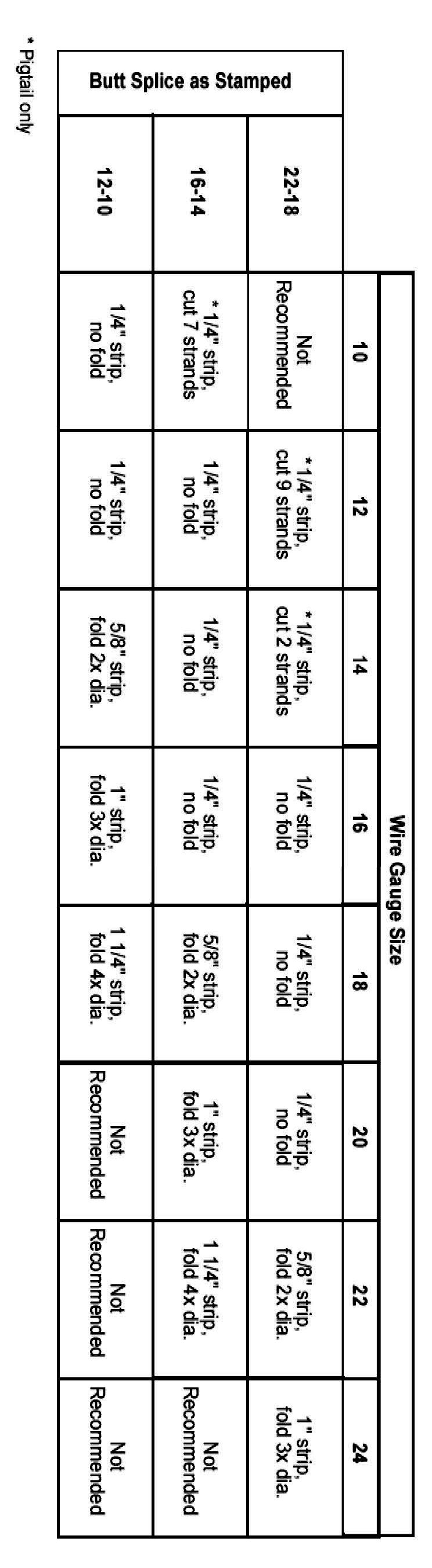 Recommended splicing method - Crimp (For 10-22 AWG Diameter Wire to Like Wire Diameter)
