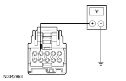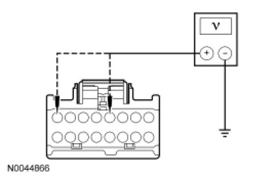 - Measure the voltage between DCSM C3305B-4, circuit VHS36 (YE/BU), harness side and ground.