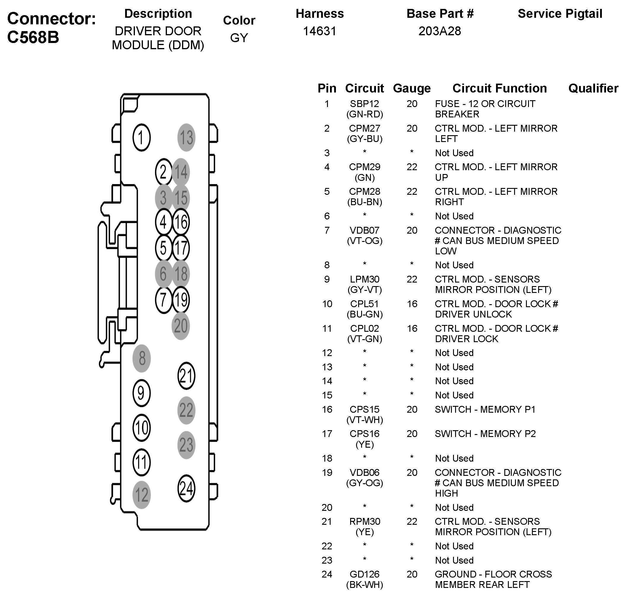 C568B Driver Door Module (DDM)