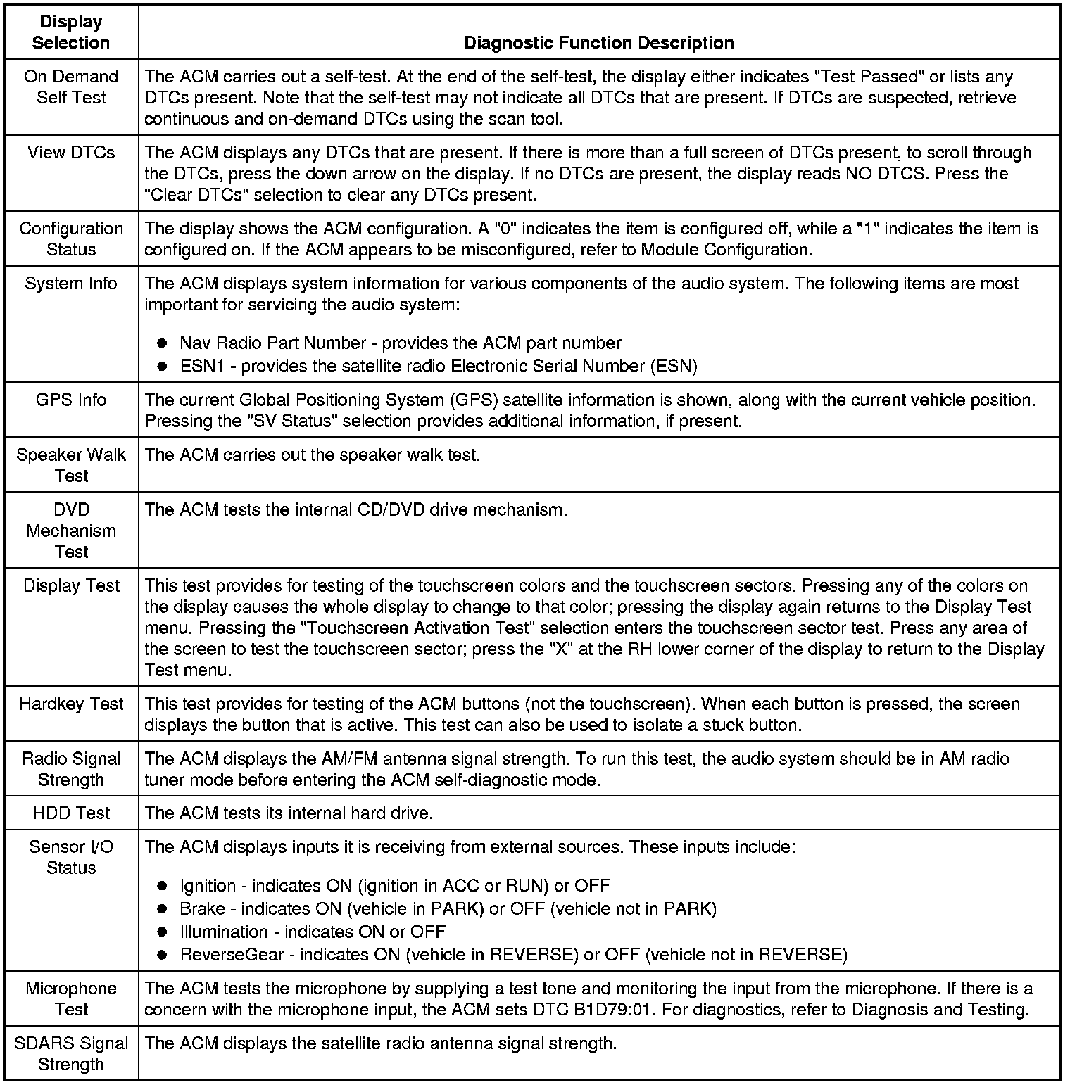 Audio Control Module (ACM) Self-Diagnostic Mode