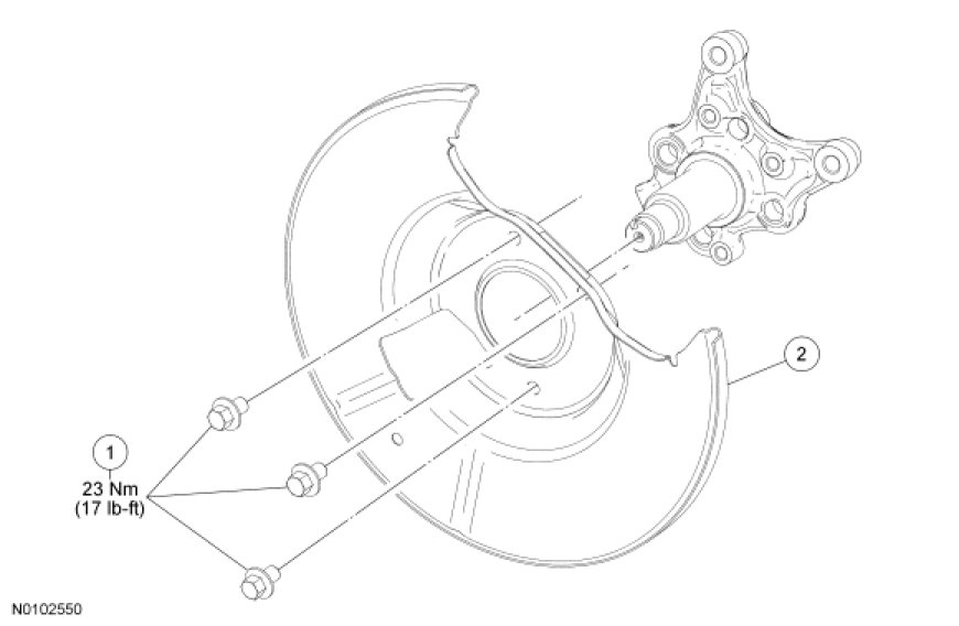 1. Remove the wheel bearing and wheel hub. For additional information, refer to Rear Suspension Rear Suspension.