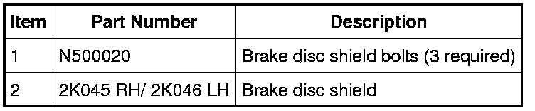 2. Remove the 3 brake disc shield bolts and the brake disc shield.