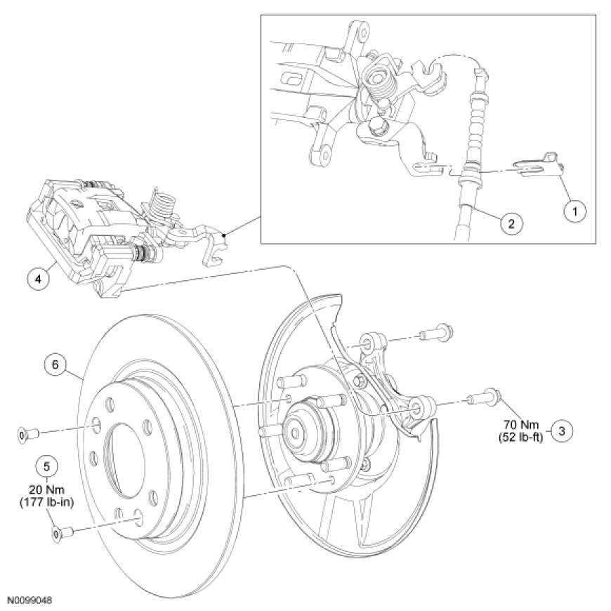 2. Disconnect the parking brake cable from the brake caliper.