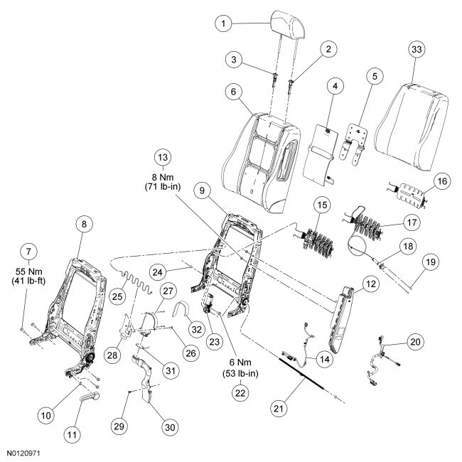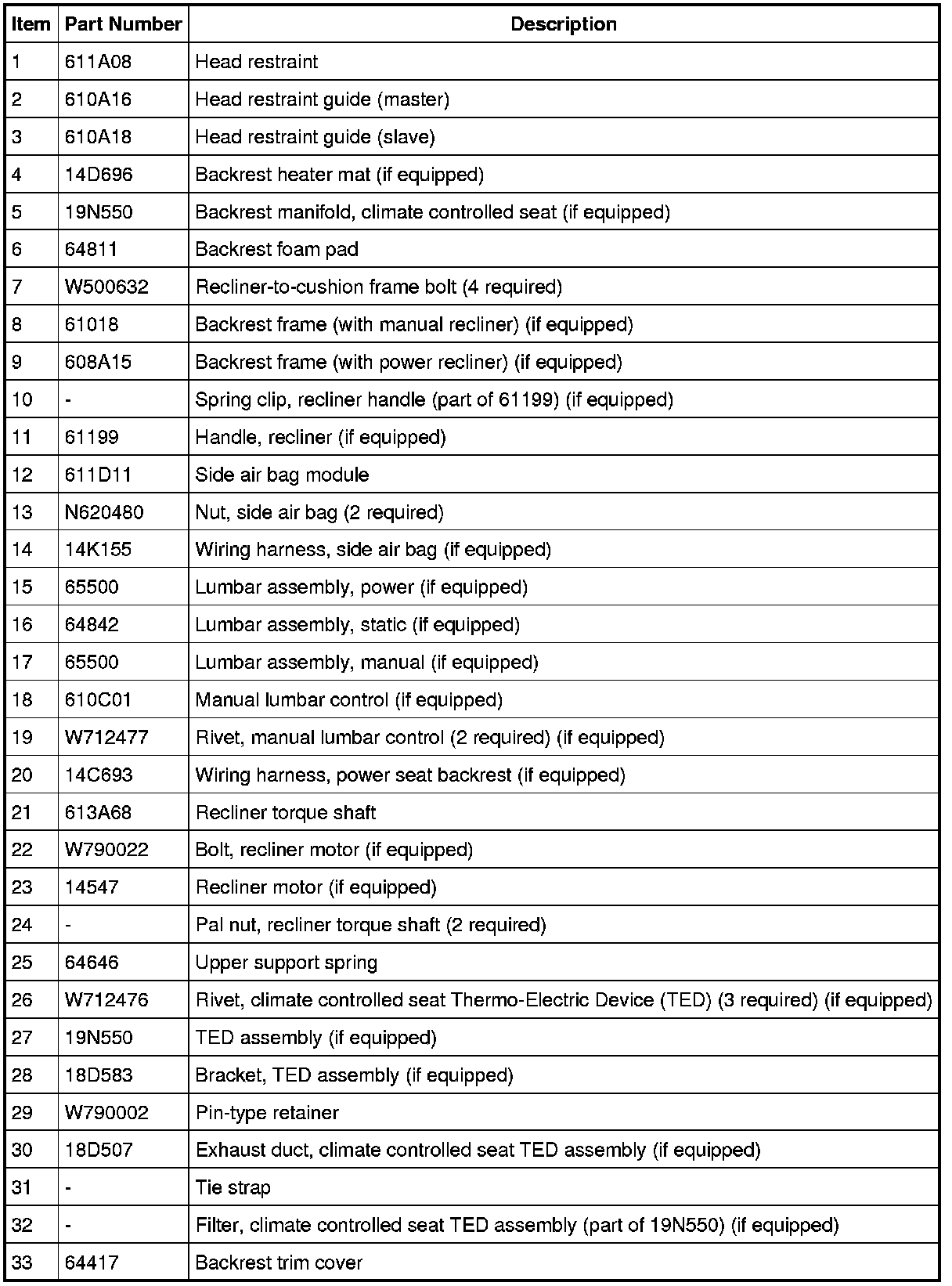 NOTE: Driver backrest shown, passenger backrest similar.