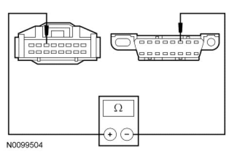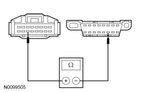 - Measure the resistance between the 4X4 control module C3253-3, circuit VDB04 (WH/BU), harness side and the Data Link Connector (DLC) C251-6, circuit VDB04 (WH/BU), harness side.