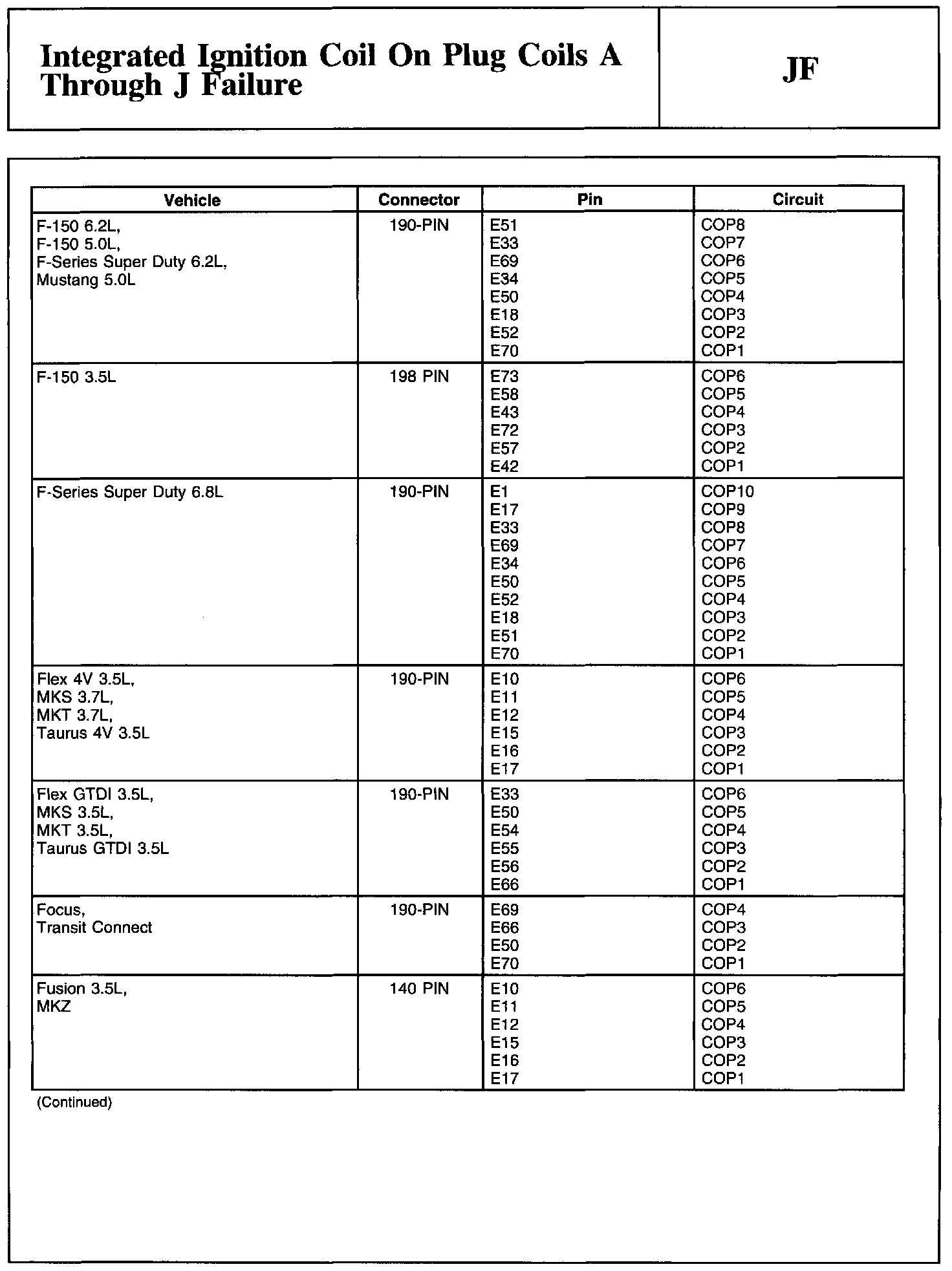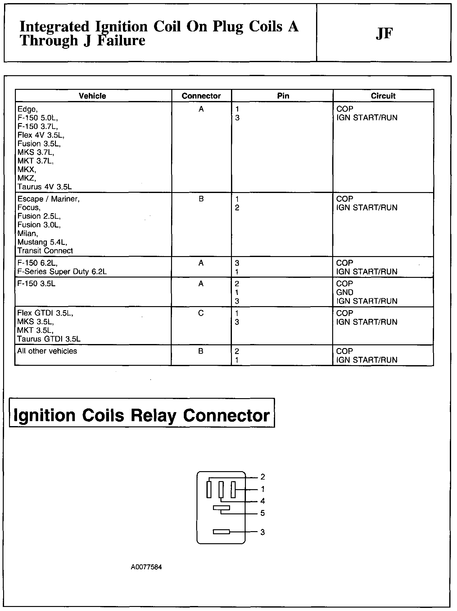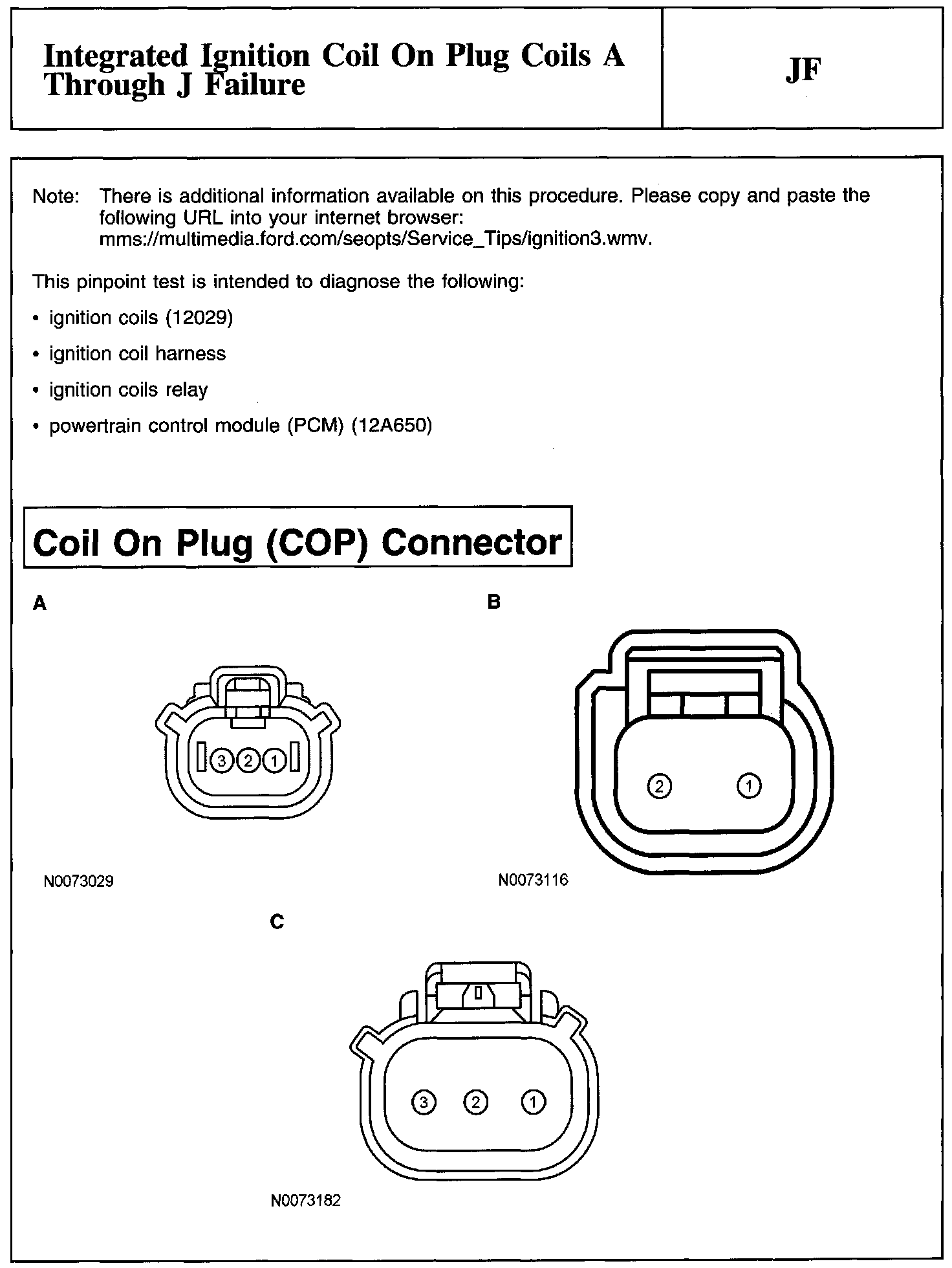 PINPOINT TEST JF: INTEGRATED IGNITION COIL ON PLUG COILS A THROUGH J FAILURENote And Coil On Plug (COP) Connector: