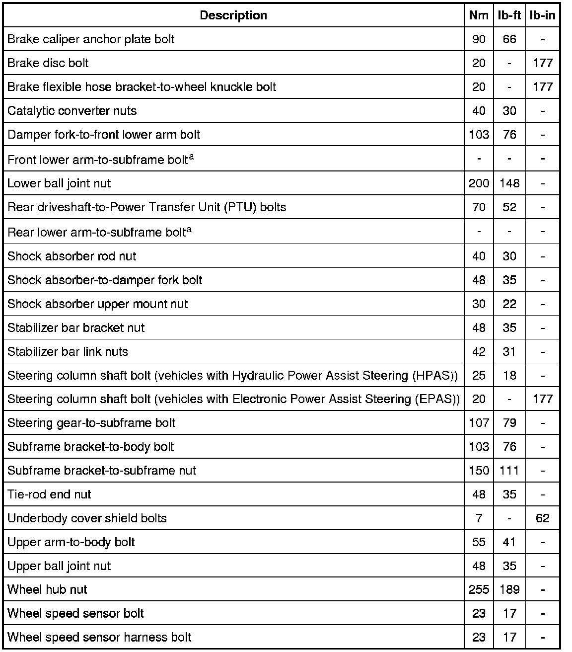 Torque Specifications