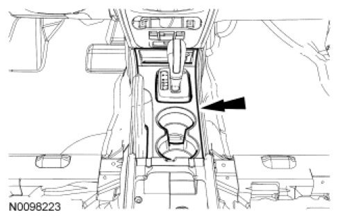 4. NOTICE: It is necessary to route the Transmission Control Switch (TCS) harness or select switch harness out of the selector lever bezel when removing the selector lever knob.