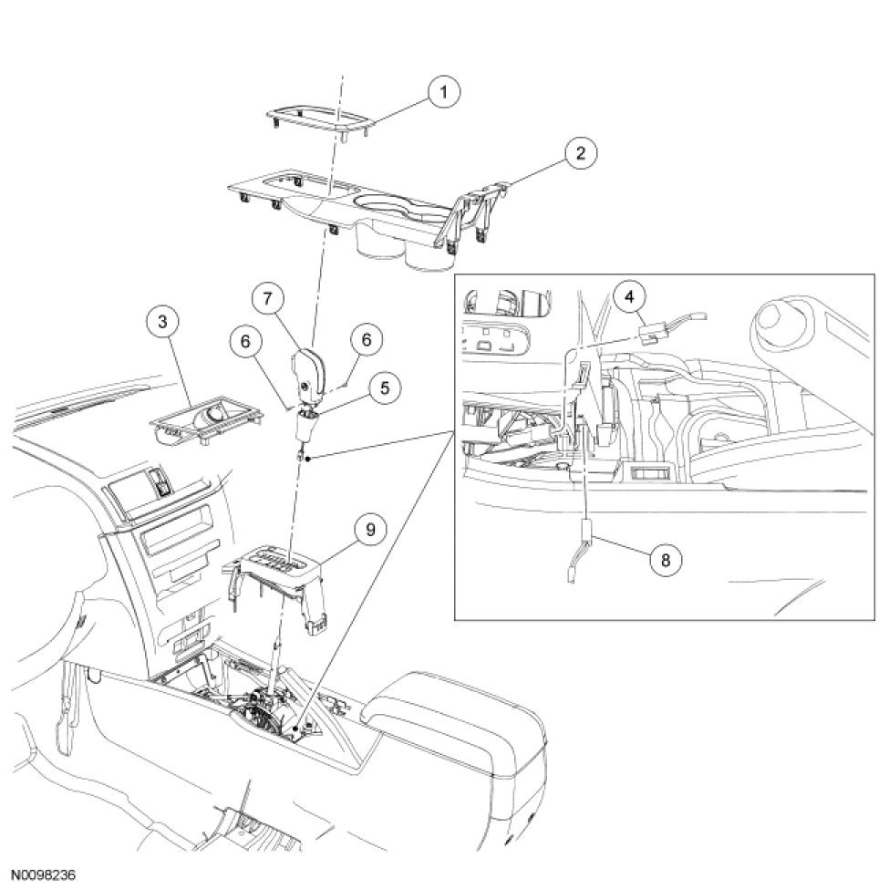 1. NOTICE: Be sure that the override lever is inserted in the override lever guide or the shift interlock override button will not work correctly.