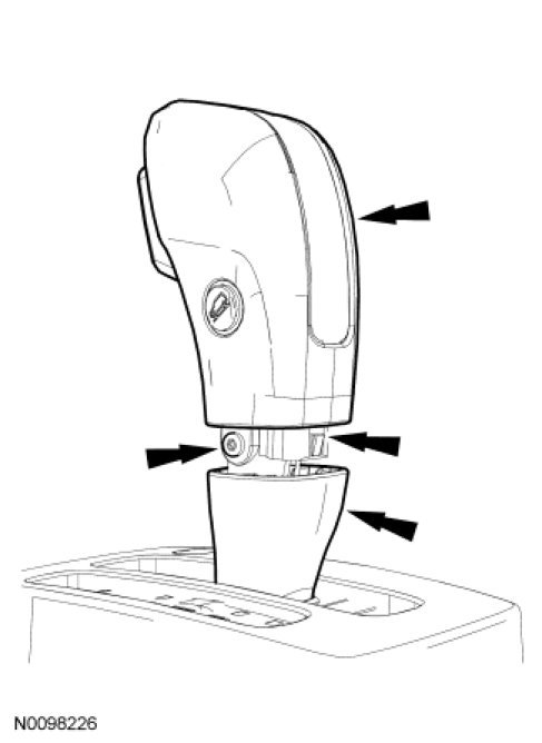 7. NOTICE: It is necessary to route the Transmission Control Switch (TCS) harness or select switch harness out of the selector lever bezel when removing the selector lever knob.