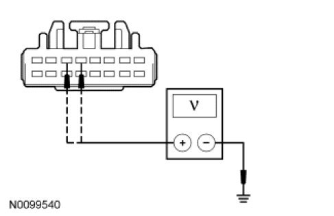 - For vehicles with THX(R) sound, measure the voltage between the audio DSP module, harness side and ground as follows: