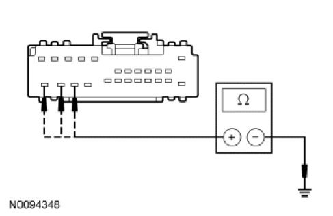 - For vehicles with THX(R) audio, measure the resistance between the audio DSP module, harness side and ground as follows: