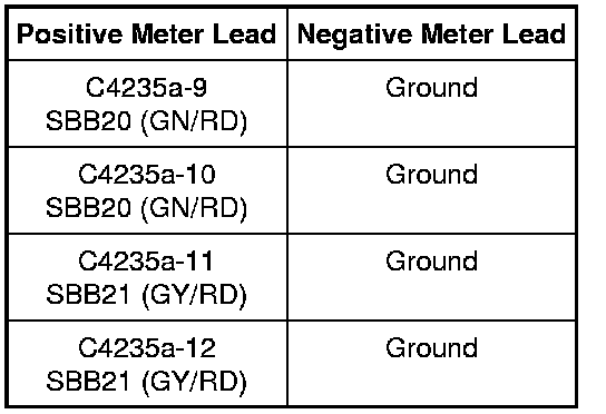 - For vehicles with Sony(R) sound, measure the voltage between the audio DSP module C4240a-5, circuit SBP19 (BU/RD), harness side and ground; and between the audio DSP module C4240a-6, circuit SBP19 (BU/RD), harness side and ground.