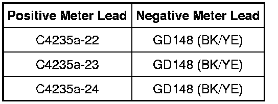 - For vehicles with Sony(R) audio, measure the resistance between the audio DSP module C4240a-13, circuit GD148 (BK/YE), harness side and ground; and between the audio DSP module C4240a-14, circuit GD148 (BK/YE), harness side and ground.