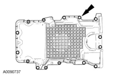 NOTE: The oil pan must be installed and the bolts tightened within 4 minutes of the sealant application.