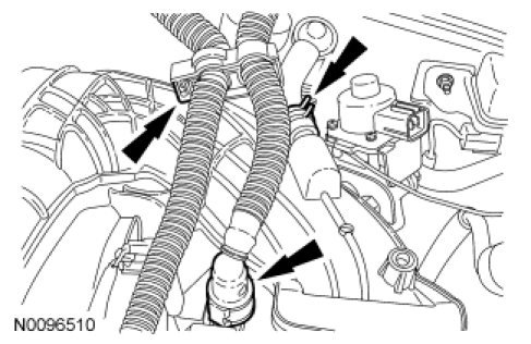 46. Connect the Evaporative Emission (EVAP) tube-to-EVAP canister purge valve quick connect coupling and the brake booster vacuum tube to the upper intake manifold.