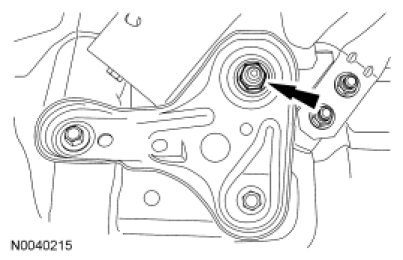 69. Install the engine roll restrictor and the 2 bolts.