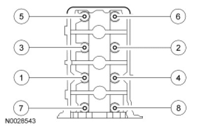 Stage 2: Individually loosen and then tighten each camshaft bearing cap to 10 Nm (89 lb-in).