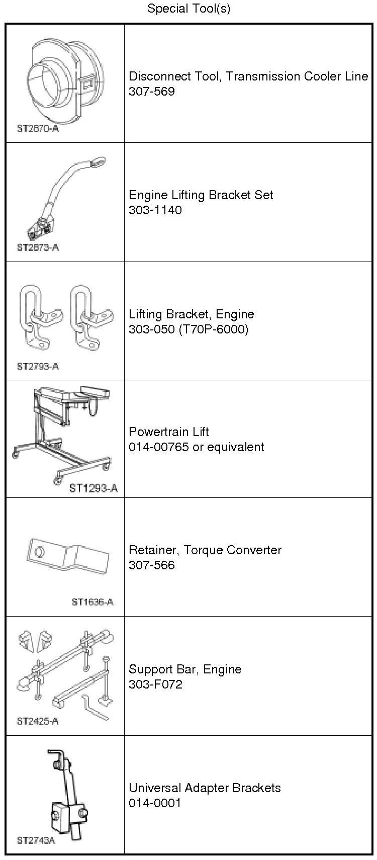 1. With the vehicle in NEUTRAL, position it on a hoist. For additional information, refer to Jacking and Lifting Service and Repair.