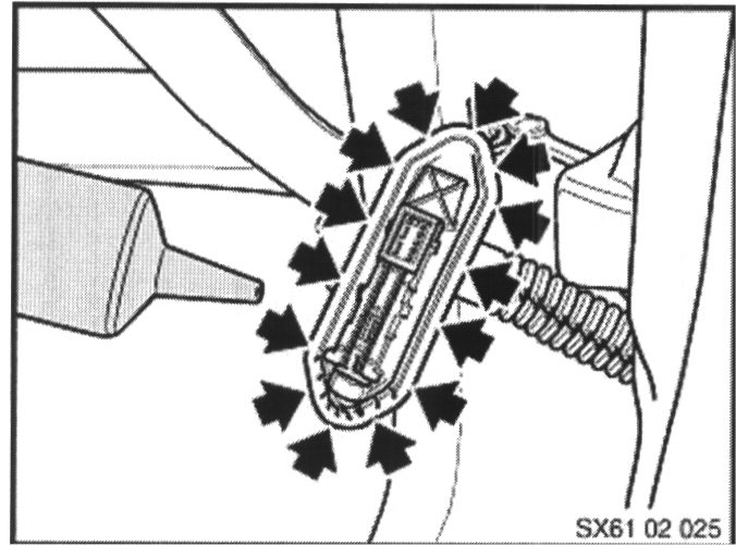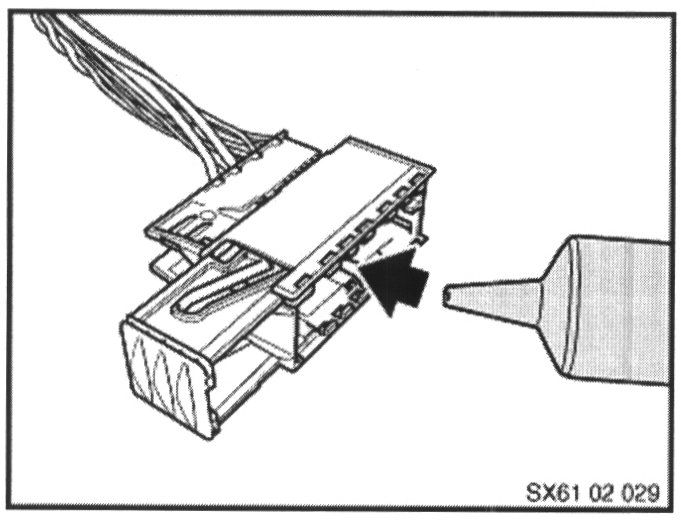 ^ Inspect the harness connector for any deposits which may have resulted from the presence of water and clean as necessary using compressed air (please observe necessary safety precautions).