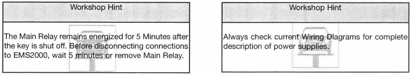 EMS2000 receives its operating power from the battery through the Main Relay and Ignition Switch.