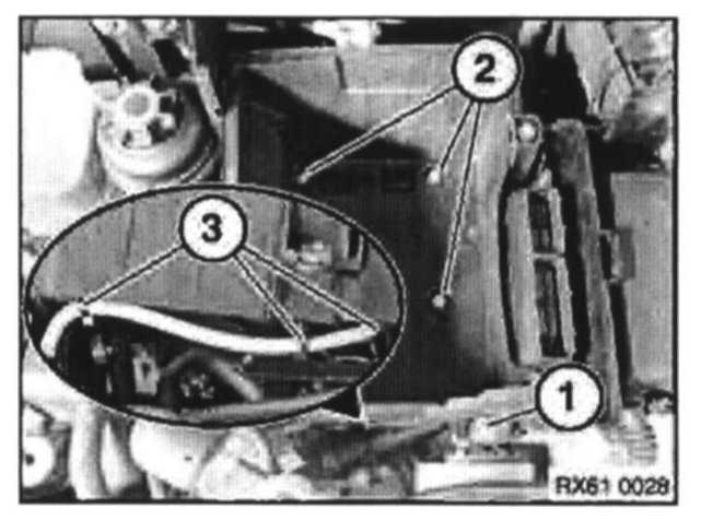 Disconnect harness clips (3) from bottom of battery box.