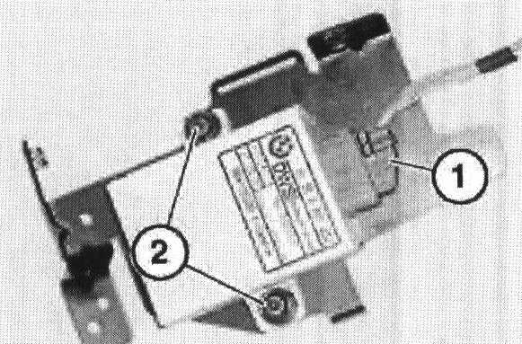 Disconnect connector (1), remove nuts (2) and remove control unit from bracket.