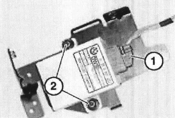 Disconnect connector (1), remove nuts (2) and remove control unit from bracket.