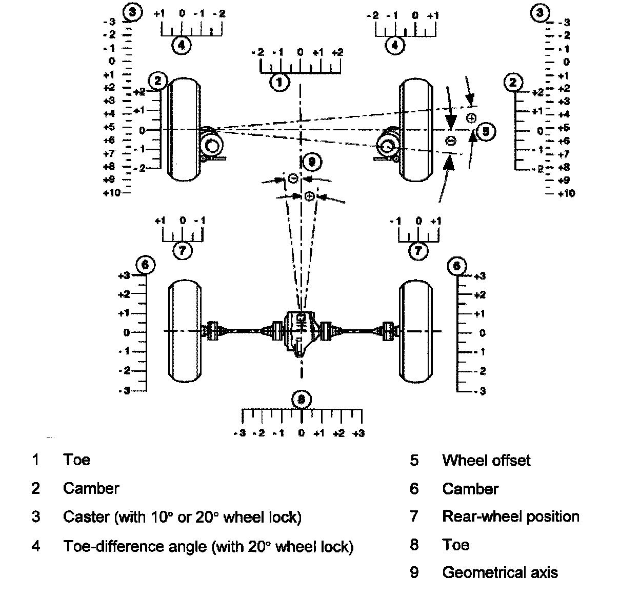 Observe test conditions for wheel alignment.