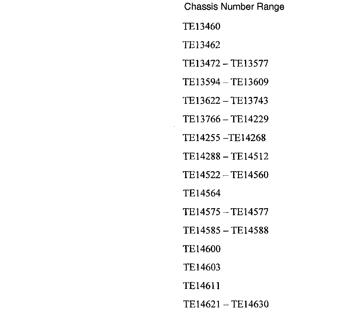 The Chassis Number Ranges listed are only for informational purposes and are not to be considered as the only deciding factor.