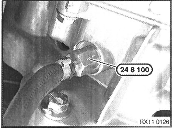 15. Refill transmission for the last time with 4.5 liters of BZL 799 oil. Check for correct oil level by removing the oil fill hose adapter - oil should flow slowly from the fill/level opening. Replace fill plug gasket (PN 24 11 7 518 710), and torque M14 fill plug to 21 Nm.