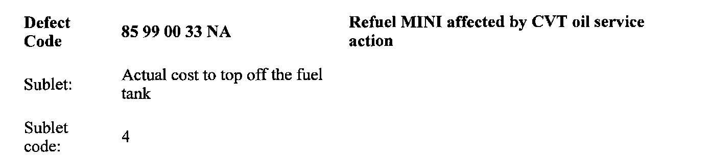 MINI a Division of BMW of North America, LLC, will provide reimbursement to have the gas tank topped off once as required, for each vehicle affected by this service action. Attach the appropriate receipt to the work order.