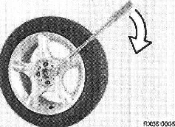 - If several wheels are removed at the same time, mark installation location of wheels on tires with chalk.
