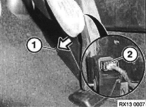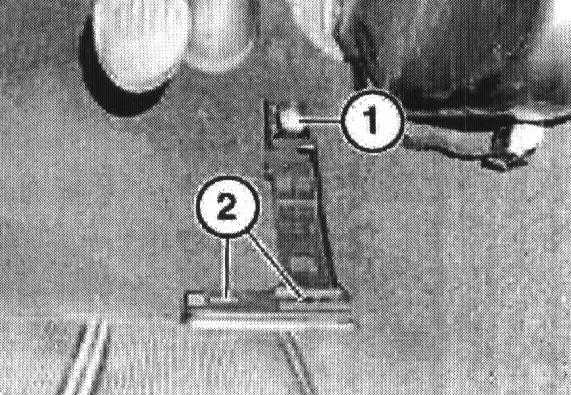 Move retaining lug (1) downwards and slide pedal assembly off retaining bracket.