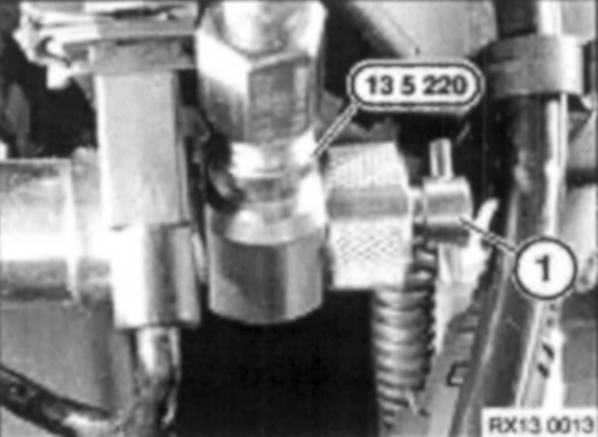 Screw in check valve (1) of special tool 13 5 220 to release fuel pressure from injector rail into the fuel container.