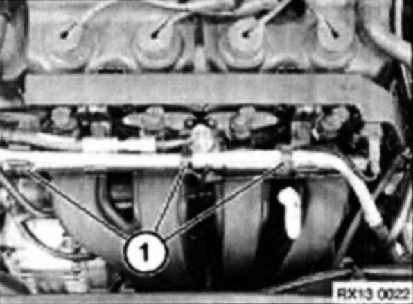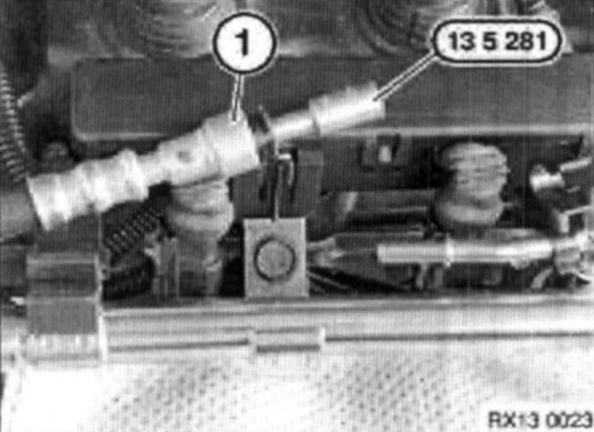 Disconnect quick fit connector (1) from injector rail and fit special tool 13 5 281.