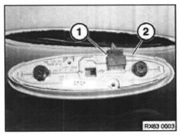 Remove screws (1) securing light module to headliner.