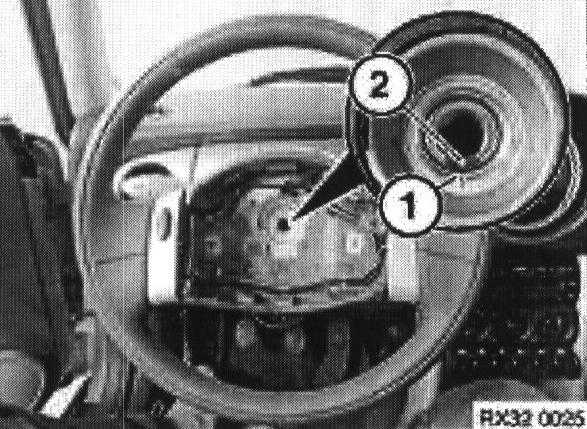 Markings on steering wheel (3) and steering spindle (4) must match up.
