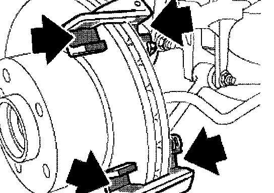 ^ When work has been completed, actuate brake pedal several times to ensure that brake pads make firm contact with brake disks.