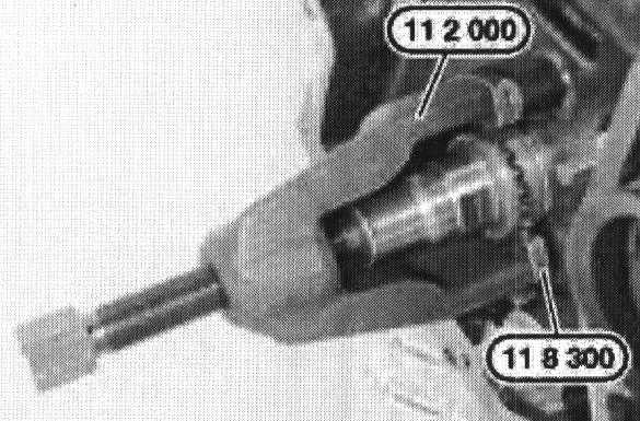 Remove crankshaft gear using special tool 11 8 300 together with 11 2 000.