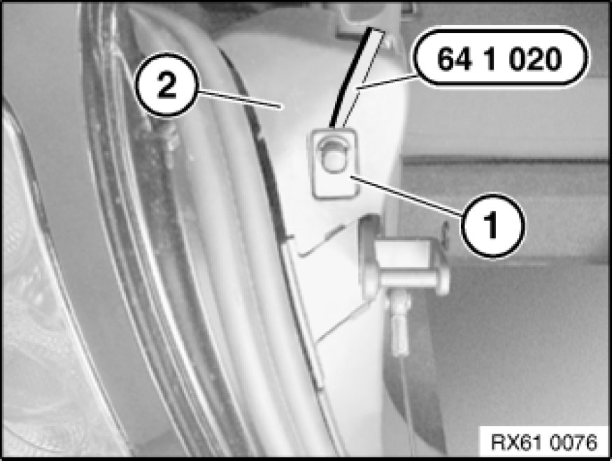 Lever contact switch for luggage compartment light (1) with special tool 64 1 020 64 1 020 Release Hook out of panel for rear lid cutout (2).