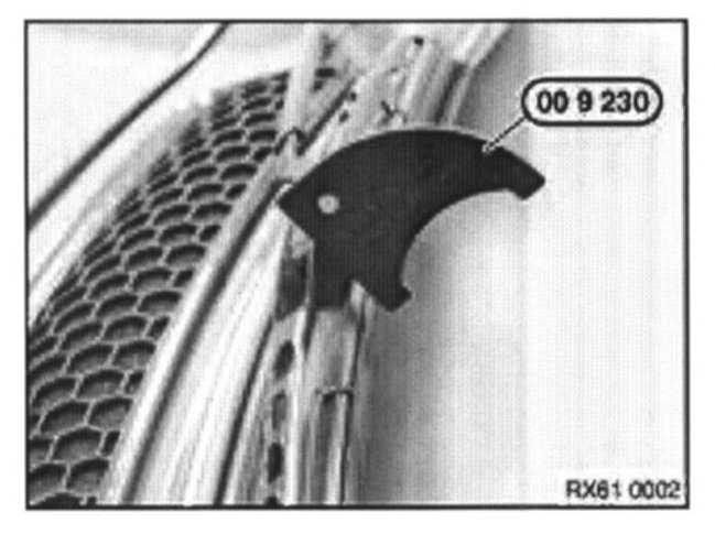 Place special tool 00 9 230 next to centre of rotation of windshield wiper blade on windshield.