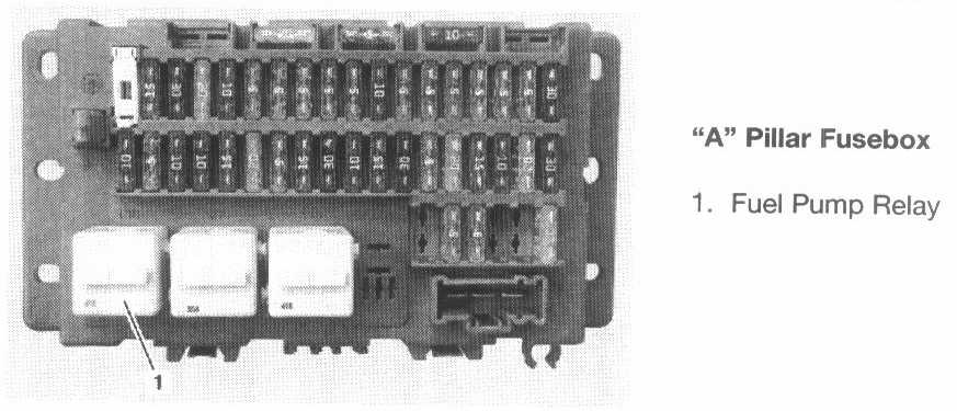 An inertia switch is installed in the B+ line to the relay between the fuse and the fuel pump relay. In the event of an impact greater than 14G the switch will open interrupting power to the relay The inertia switch has to be reset manually once it has been triggered.