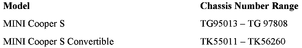 This Service Action involves R53 Cooper S and R52 Cooper S Convertible vehicles with W11 engines and F21 automatic transmissions which were produced from 12/07/2004 up to 06/06/2005.
