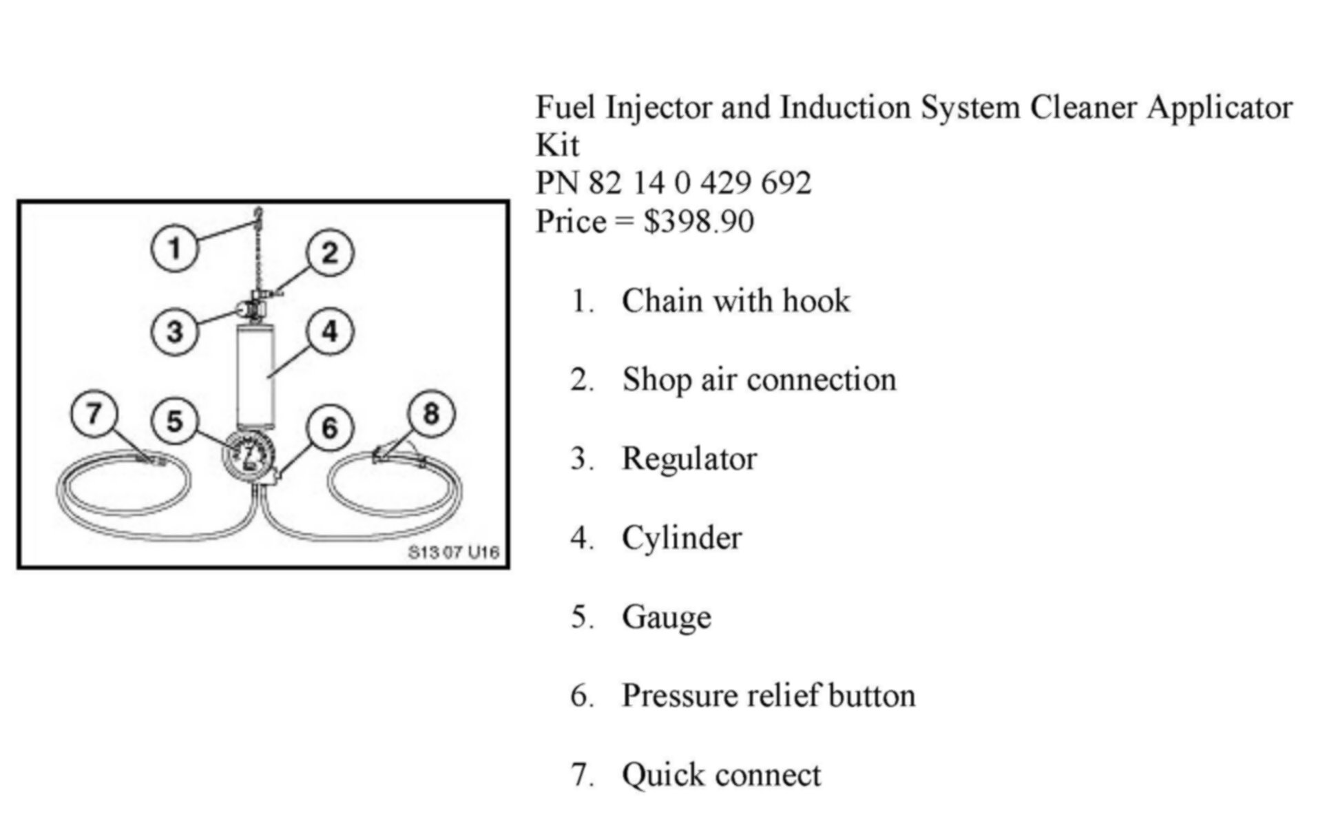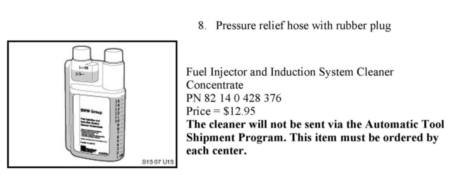 The Fuel Injector and Induction System Cleaner Applicator is constructed with materials that are compatible with gasoline and the Fuel Injector and Induction System Cleaner Concentrate PN 82 14 0 428 376 only.